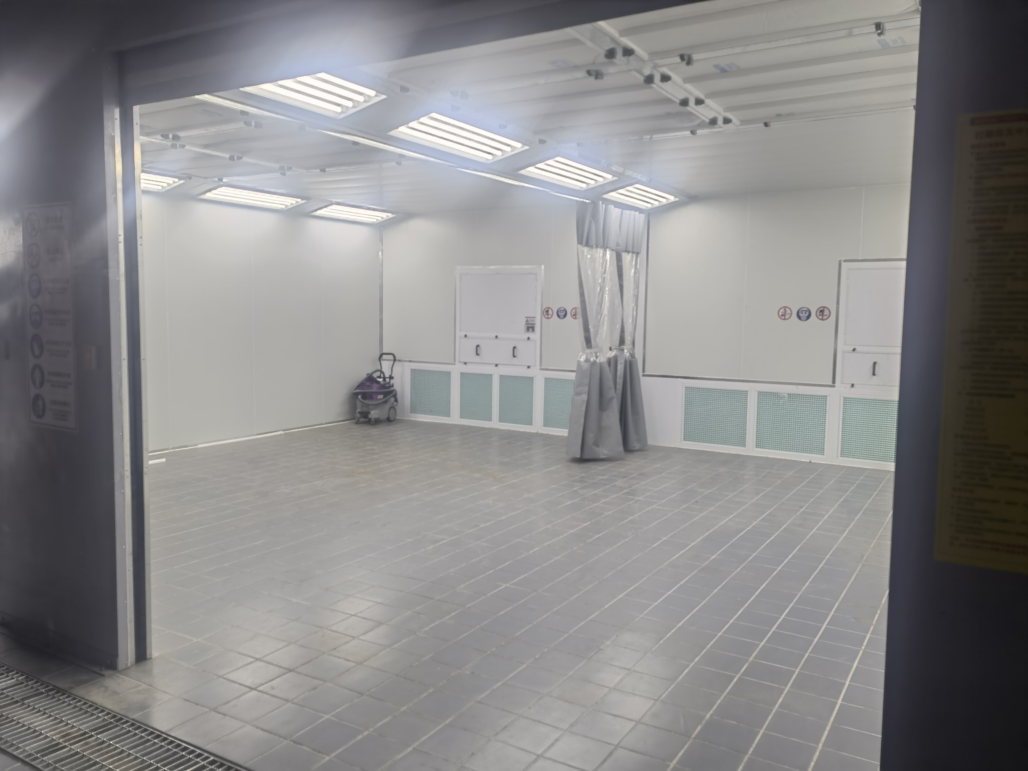 Многоступенчатая фильтрация:Защищает окружающую среду мастерской с помощью четырехступенчатой системы фильтрации: предварительный фильтр ввода, потолочный фильтр высокой эффективности, фильтр краски на полу из стекловолокна и фильтр выхлопа средней эффективности.
