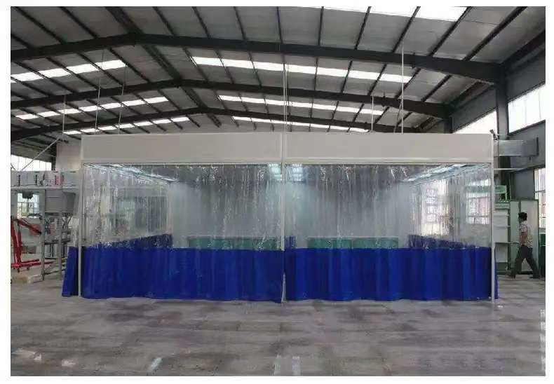 ПВХ-занавескиВ отличие от фиксированной кабинки, на подготовительной станции используются скользящие PVC-занавески.